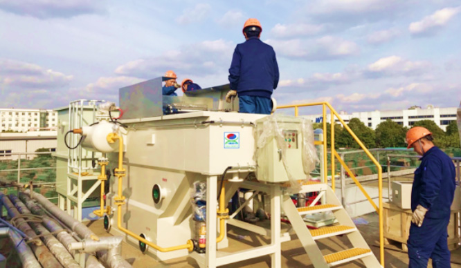 淺層氣浮槽的水槽淺,處理能力大,占地面積小,水位及刮渣深度均可調(diào),流量適應(yīng)范圍大,刮起的浮渣含固率高,特別適用高濃度污水的處理。